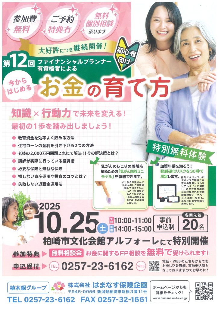 はまなす保険企画主催のマネーセミナーを開催いたします!!